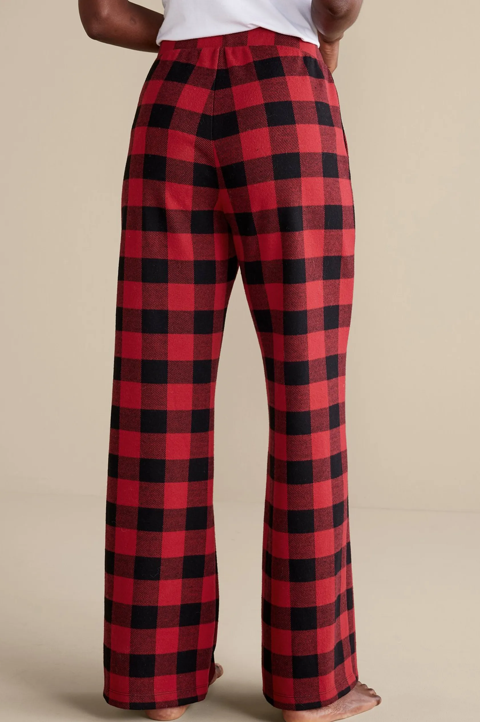 Your dreamiest, softest sleep pant ever. This stylish buffalo check pant in velvety-soft flannel invites sweet slumber (or cozy days by the fire). The wide leg design is extra easy, finished with satin ribbon ties and side seam pockets.