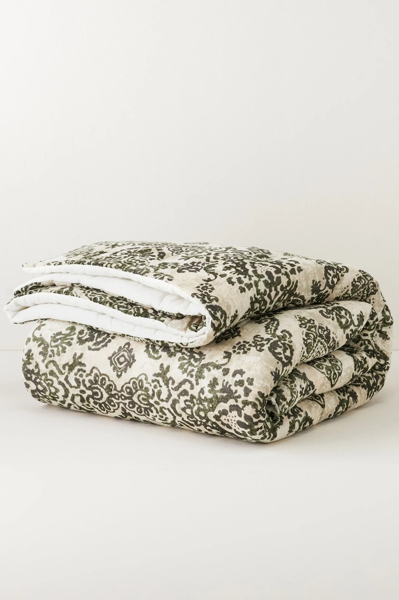Green scrollwork atop a soothing sea of oatmeal evokes a peaceful garden in the English countryside. But this dreamy design is more than just beautiful. Crafted of soft linen and cotton, this lush comforter will ease you into a restful night’s sleep.