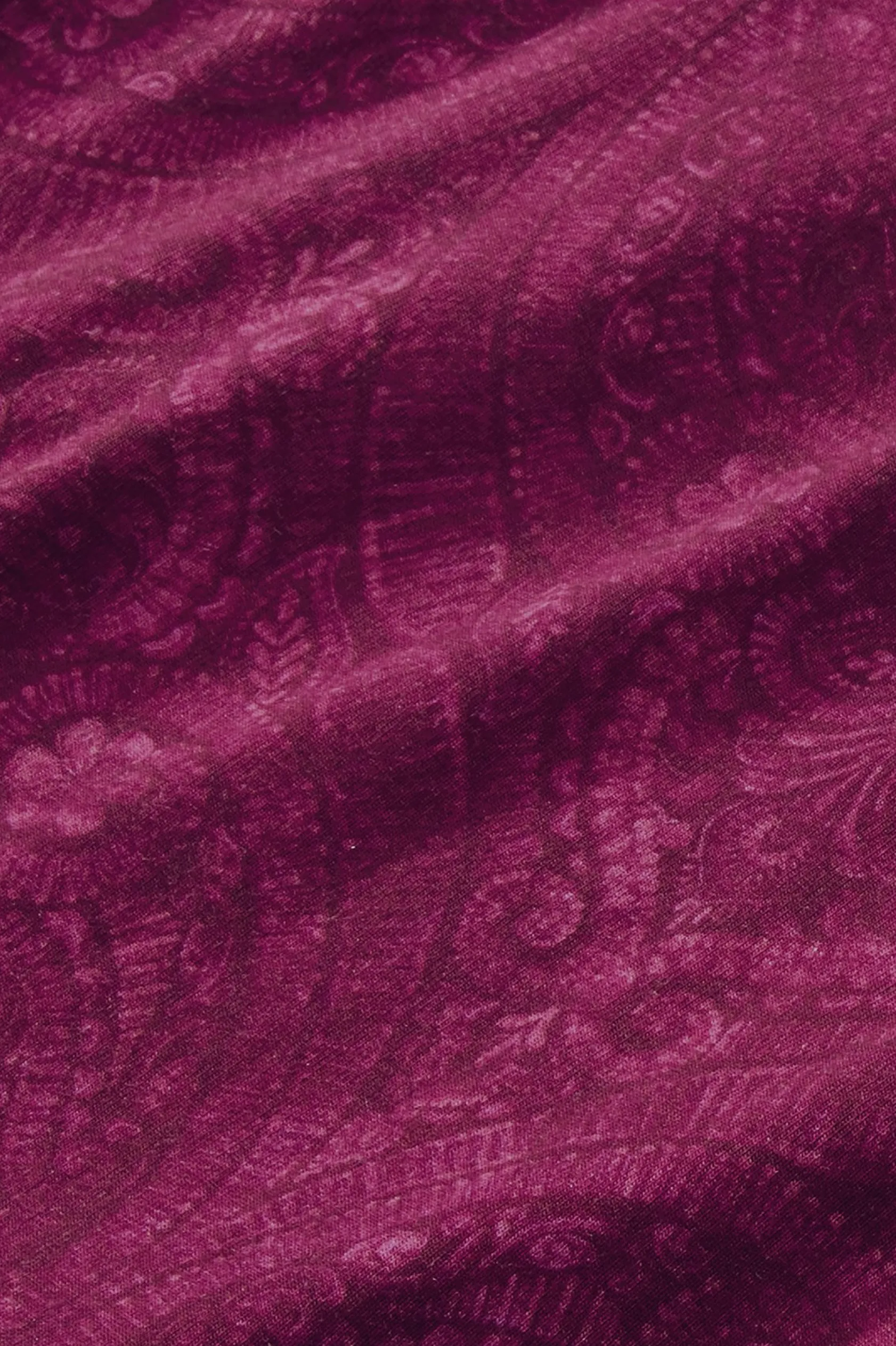 Magical draping and self-ties create phenomenal waist shaping and figure flattery on this soft knit dress. In a berry-hued tonal tapestry, this vintage-inspired maxi features a surplice top. The effect is so slimming and chic. Front slit. Long sleeves.