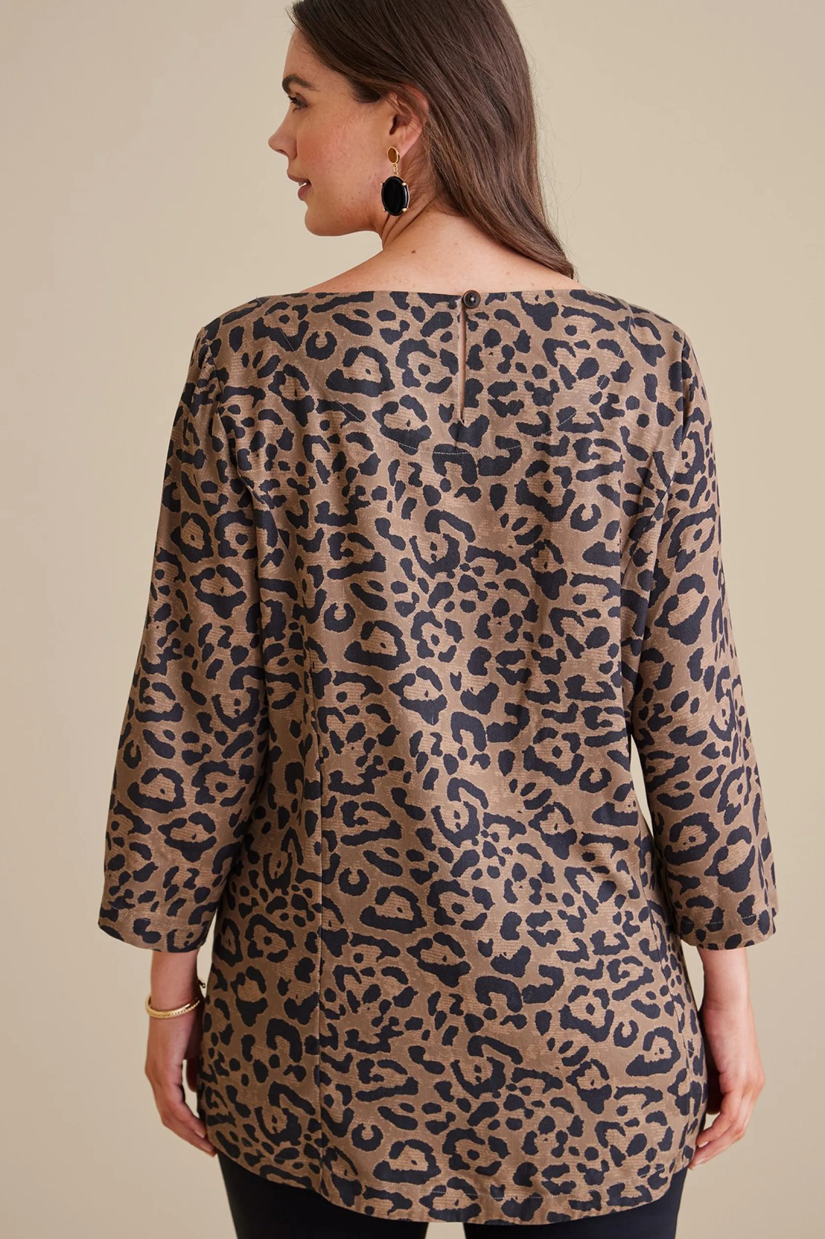 Crafted of supple lyocell, this easy top is soft beyond your wildest dreams. The fit is phenomenal with a drapey hand and a wider scoopneck that beautifully shows off shapely collarbones. And that leopard print with the button detailing? Purrrrrfect.